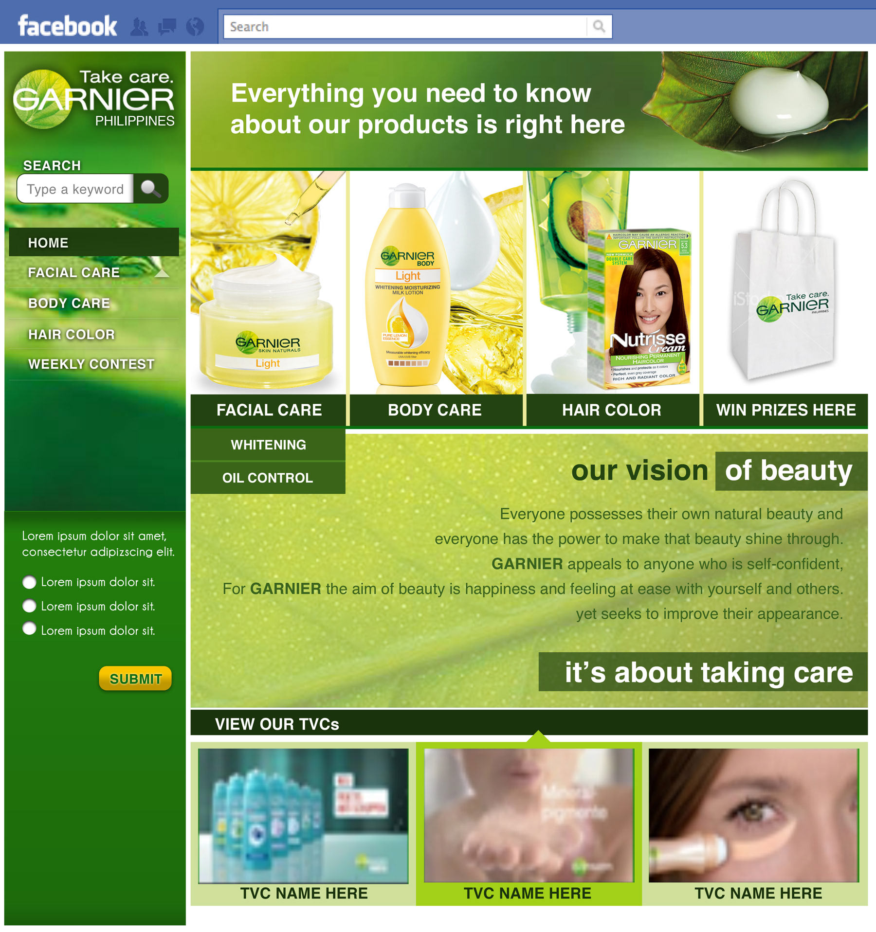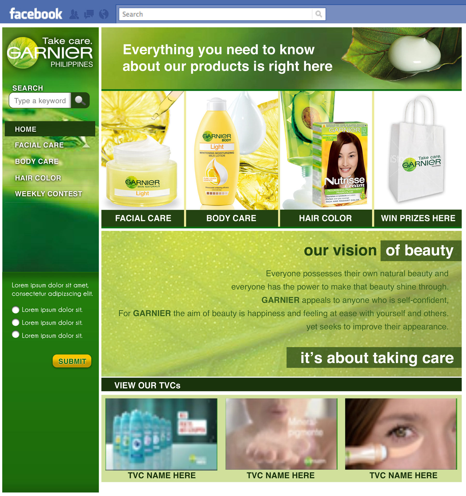 Garnier Total App is a Facebook application that houses all of the details of the Garnier products that are available for the Philippine market.